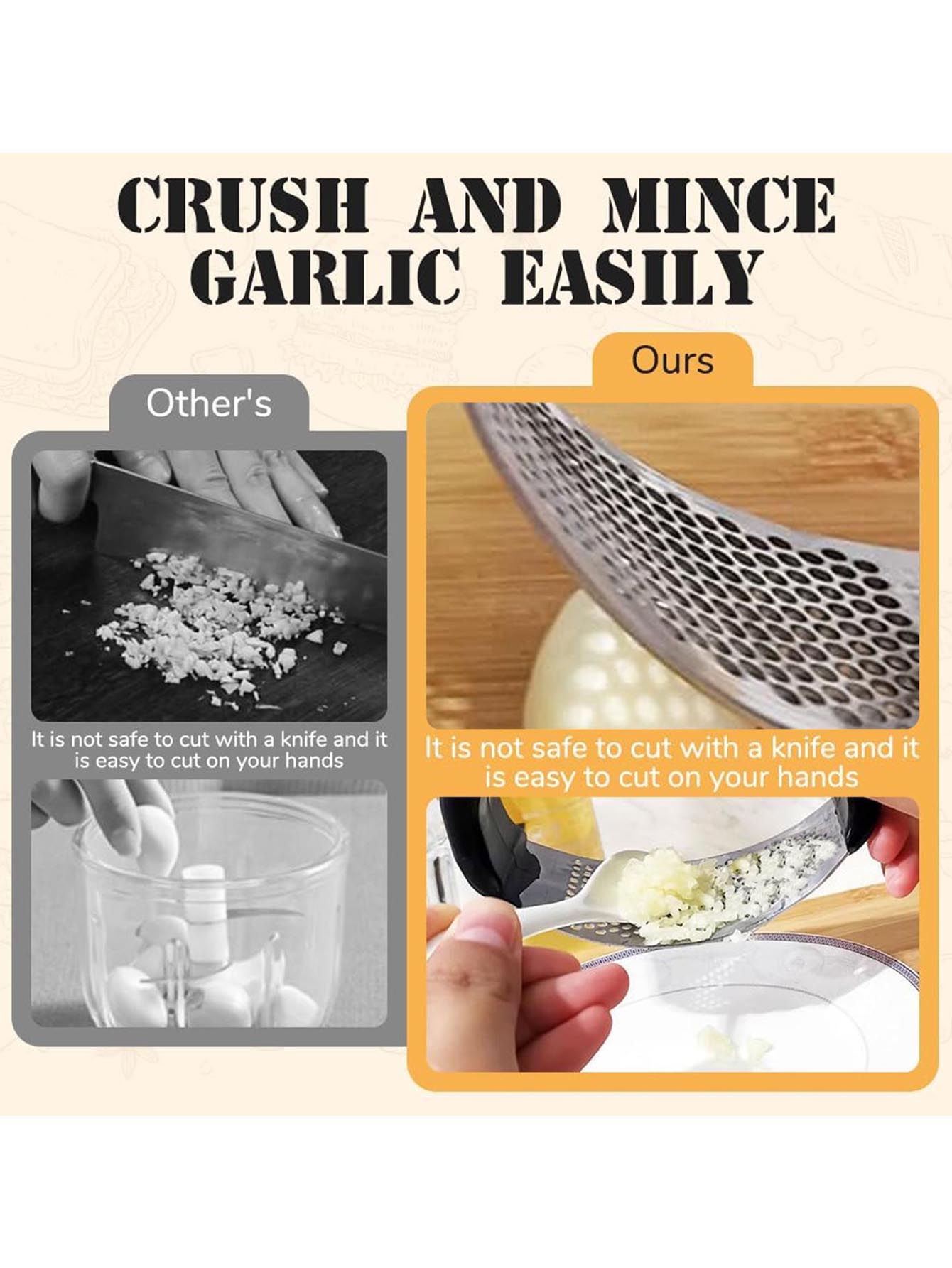 这款弧形手动压蒜器,以省力设计与高效压蒜效果,为厨房蒜蓉料理带来便捷新体验: 省力弧形设计:贴合手部发力习惯,手动按压即可轻松将大蒜压成细腻蒜泥,操作简单不费力,老人也能轻松驾驭。 细密网孔结构:金属压蒜面采用均匀网孔设计,能快速将蒜瓣压碎成细腻蒜蓉,避免蒜泥结块,让调味更均匀。 舒适握感:人体工学手柄,防滑且握感舒适,按压过程稳定不打滑,厨房备菜更轻松。 无论是制作蒜蓉小龙虾、蒜蓉蒸菜,还是调配蒜蓉酱料,它都能让 “蒜蓉制作” 环节高效省力,是提升厨房备菜效率的实用小工具。