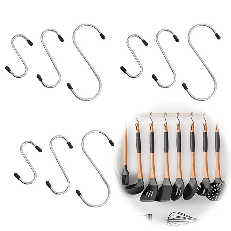 3件/4件/5件多规格S 型多功能挂勾 适用于厨房收纳、阳台挂物、车库工具整理的防滑 S 型挂钩 解决空间利用与物品悬挂需求的实用收纳工具