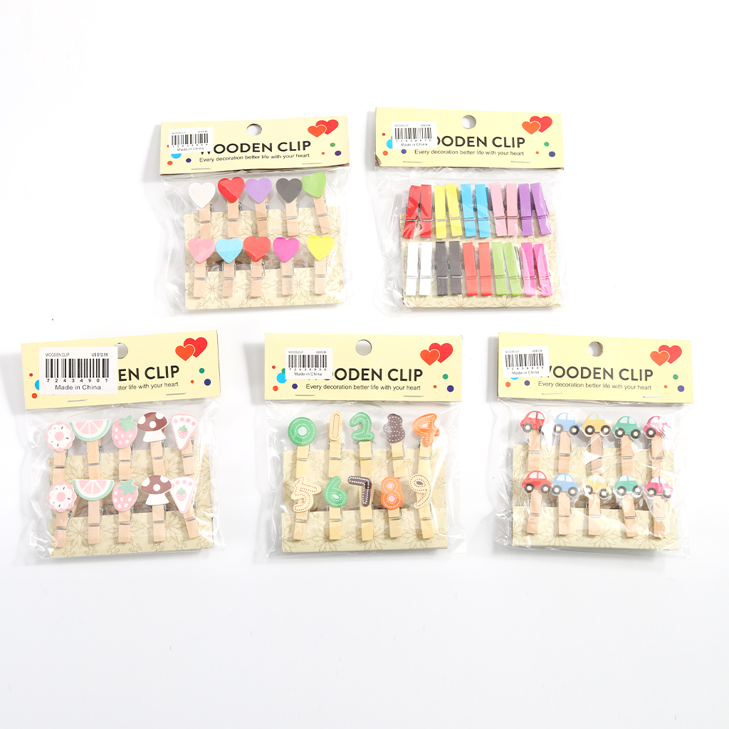 设计与品类: 属于创意木质装饰夹子品类,以天然木材为主体,融合多样创意元素,涵盖爱心、彩色纯色、水果(草莓、西瓜等)、数字、汽车等图案,造型小巧精致,是兼具装饰性与实用性的文具及家居小物。 功能与场景 :具备固定与装饰双重功能,可用于照片墙固定、手账美化、礼品包装点缀、家居留言夹等场景;也适用于儿童手工创作、节日装饰布置等,满足多元场景的创意与实用需求。 风格价值 :风格可爱清新、充满童趣,丰富的图案设计适配不同审美偏好,既能为生活细节增添创意氛围、提升仪式感,也可作为创意礼品传递心意,或作为儿童手工素材激发创造力。