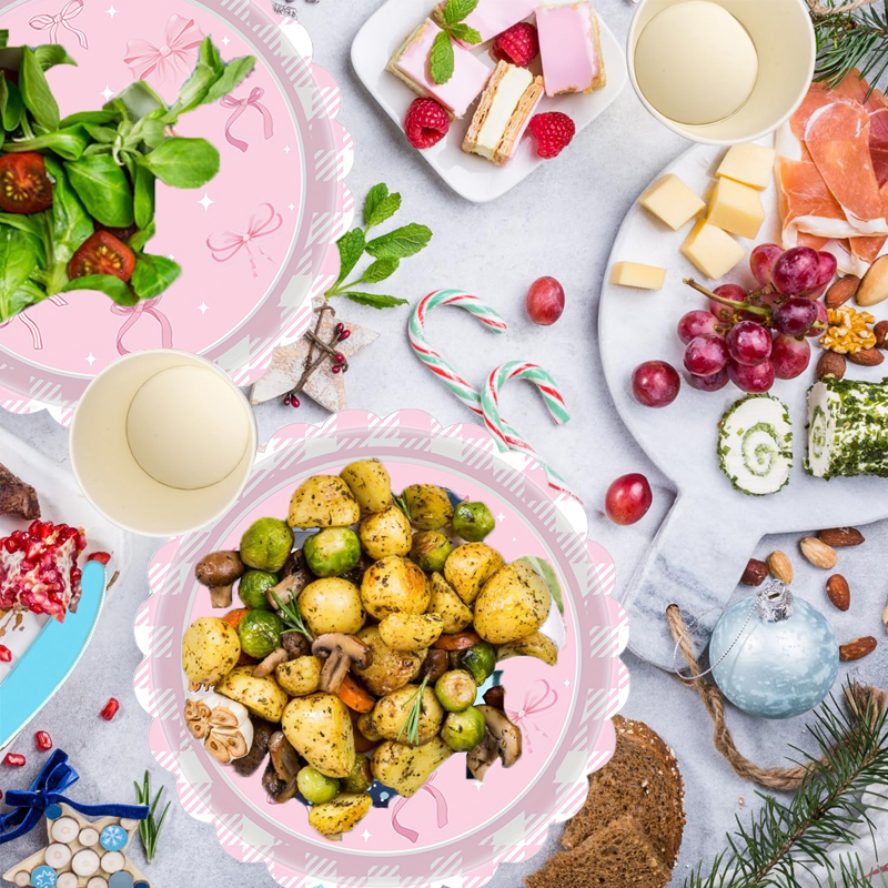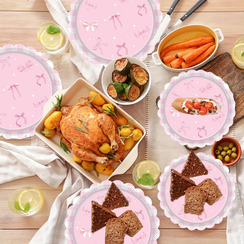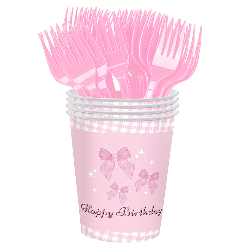 设计与品类 品类丰富度:涵盖纸巾、多规格餐盘(大 / 中 / 小尺寸)、纸杯、条纹吸管、塑料叉子等,覆盖派对用品核心品类,实现一站式采购。 设计统一性:以粉色为主色调,融合蝴蝶结、格纹元素,视觉风格高度统一,形成强识别的主题化设计语言。 功能与场景 功能完整性:覆盖 “吃(餐盘、叉子)、喝(纸杯、吸管)、清洁(纸巾)” 全流程使用需求,满足派对场景下的多元功能诉求。 场景适配性:精准匹配女孩生日派对场景,也可延伸至公主风、粉色主题派对等,为儿童庆祝活动营造专属氛围。 风格价值 风格辨识度:通过粉色系、蝴蝶结元素打造甜美梦幻的公主风,契合女性儿童审美偏好,传递温馨、欢乐的情感价值。 仪式感塑造:主题化设计强化场景视觉统一性,提升派对沉浸感,为活动赋予更强的仪式感与纪念意义。