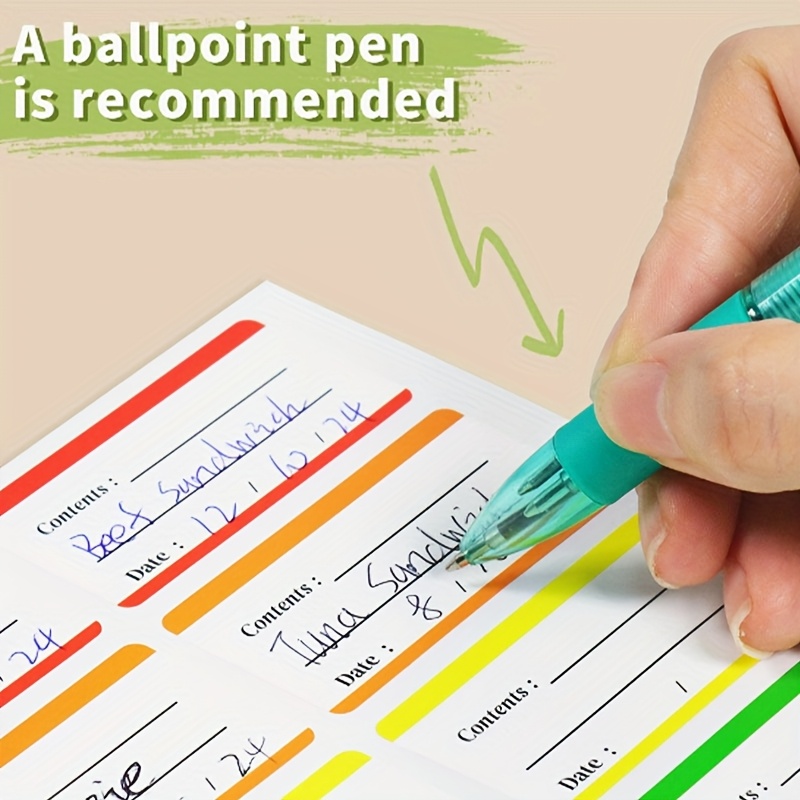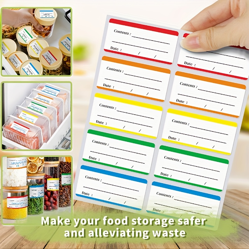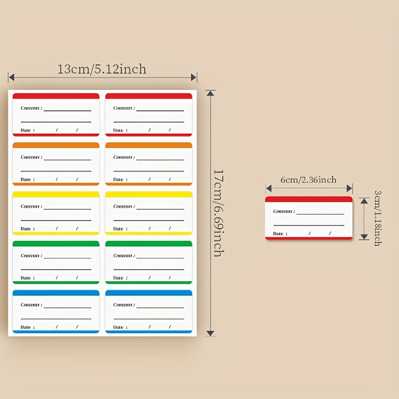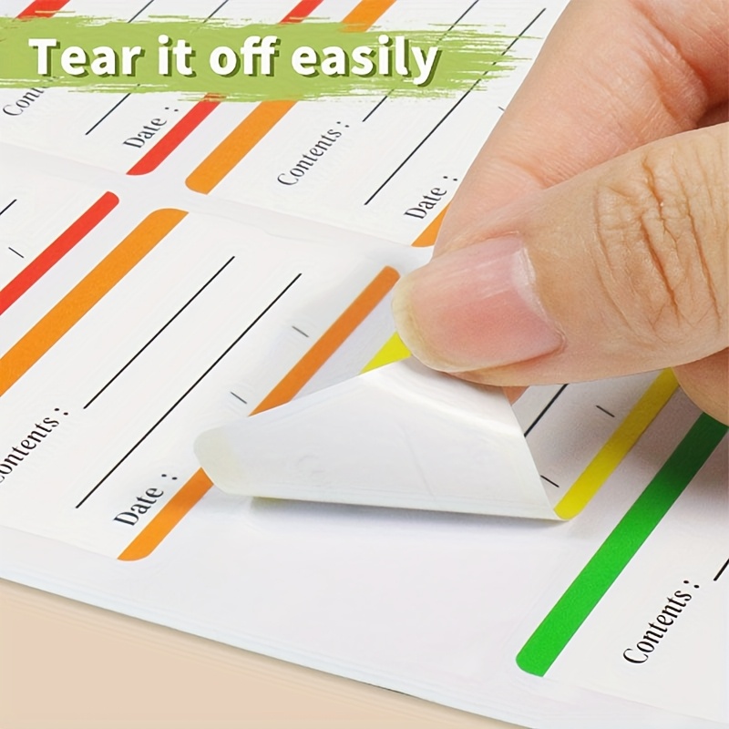 Color classification: red, orange, yellow, green and blue labels are easy to distinguish different types of items (such as different file types and food types), Improving classification efficiency and visual recognition. Clear information: set "content" and "date" filling columns to clearly mark the information and time of articles, which is suitable for food preservation (recording shelf life) and file archiving (marking the content and date of documents) and other scenarios to avoid information confusion. Various sizes: large labels can be cropped as needed, and a single label is small in size, suitable for sticking to various carriers such as bottles and cans, documents, storage boxes, etc., and suitable for different use scenarios. Practical material: the sticker material has good adhesion, is not easy to fall off, and the writing is smooth. It can be easily recorded by pen type, and is a practical tool for classified management of home and office.