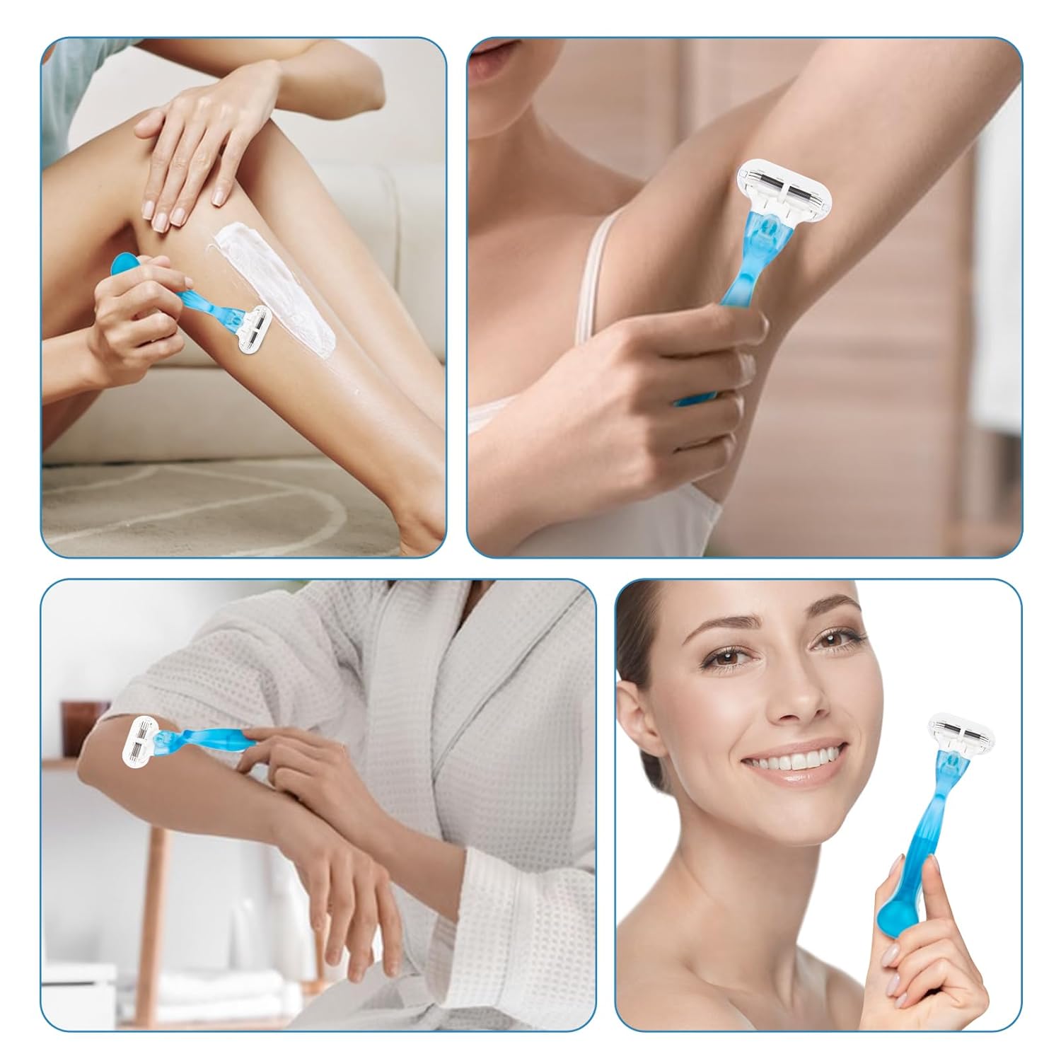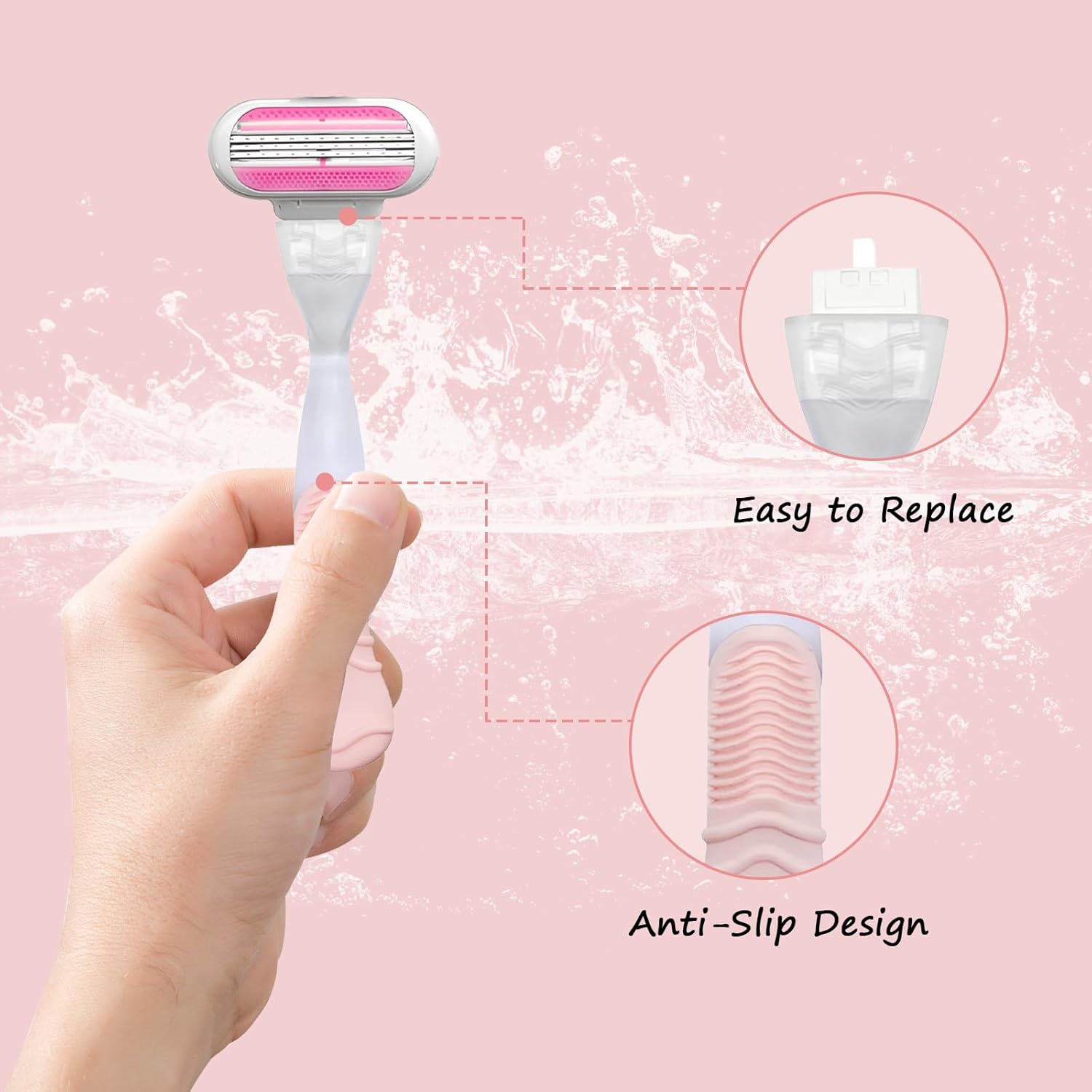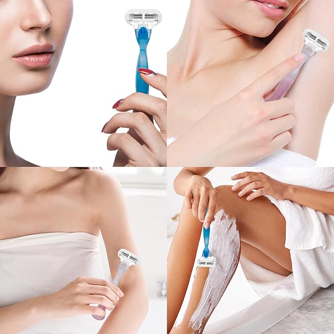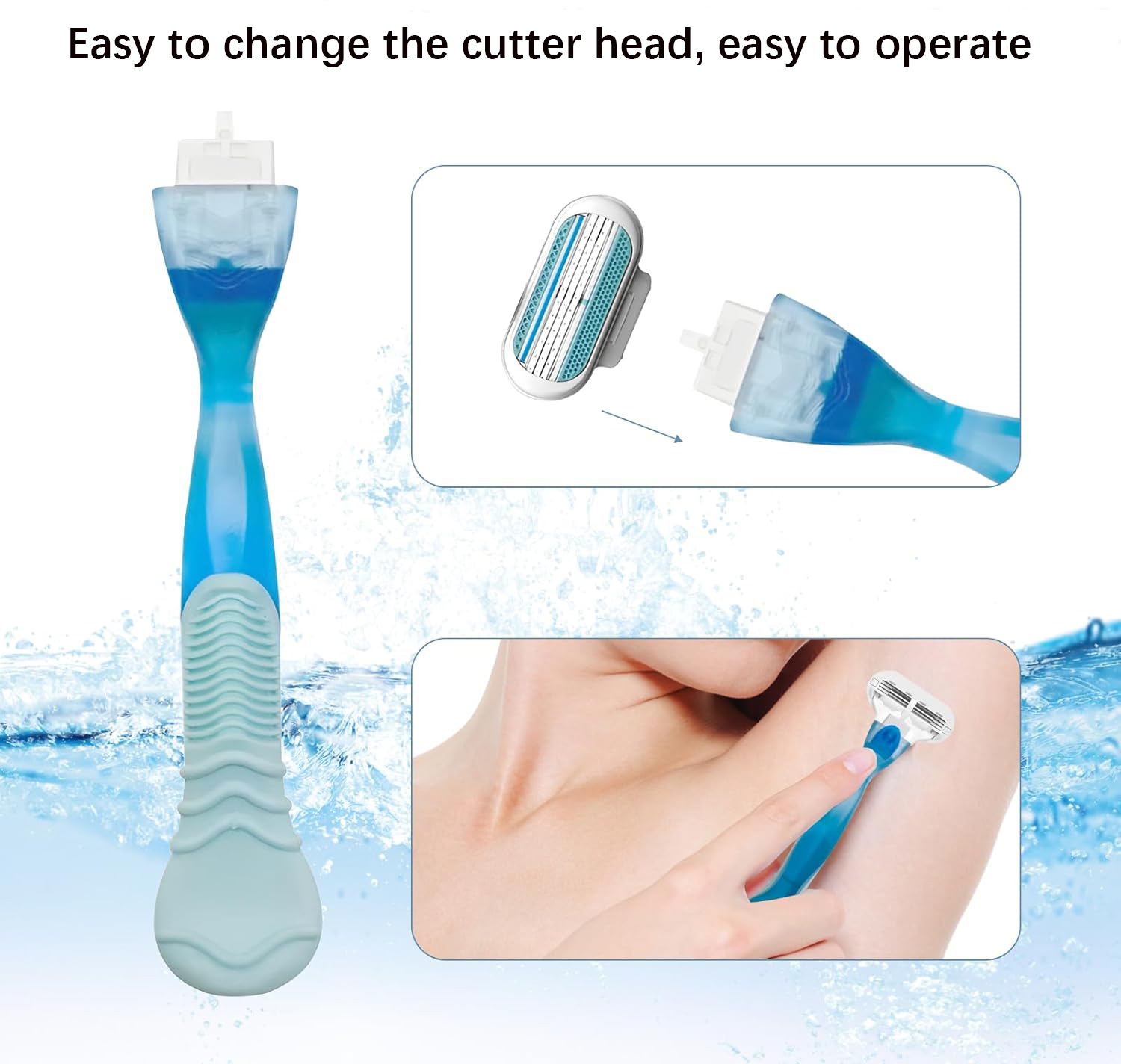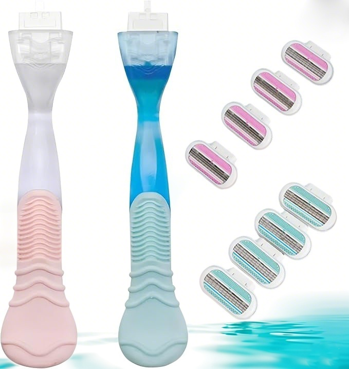 Design and Category: The category is Women's hair removal knife set, which belongs to personal care category. It adopts two-color Main body design of pink and white, blue and gray, and the handle has anti-skid texture to enhance the grip feeling; It is matched with multiple groups of replaceable cutter heads (the color matching of pink and blue is distinguished), and the structure of cutter heads is fine, the overall design gives consideration to both "visual beauty" and "practical use". Different from ordinary disposable hair removal knife, it is an advanced hair removal tool with "replaceable anti-skid handle of knife head. Function and scenario: functional realization of efficient hair removal long-term use: multiple sets of knife heads can be replaced to meet the demand of continuous hair removal; Anti-skid grip improves operation stability, and is suitable for hair removal of legs, underarms and other parts, the hair removal process is smoother. • Wide range of scenarios: suitable for daily home hair removal care (regular body hair management), travel and travel portable scenarios (small and easy to carry, keep skin smooth), and can also be used as a long-term home hair removal tool, one purchase meets multi-time usage requirements. Style value: style positioning fresh and simple style: soft color matching of pink and blue fits women's aesthetic, the humanized design of non-slip texture shows delicacy, breaking the monotonous sense of "functionalization" of traditional hair removal tools. • Value compound: It not only has the practical value of efficient hair removal (to create smooth skin), but also achieves the cost-effective value of long-term use through "replacing comfortable grip with multiple knife heads, at the same time, it conveys the aesthetic value of" delicate care "with fresh appearance, which makes female hair removal care more pleasant and ritual.