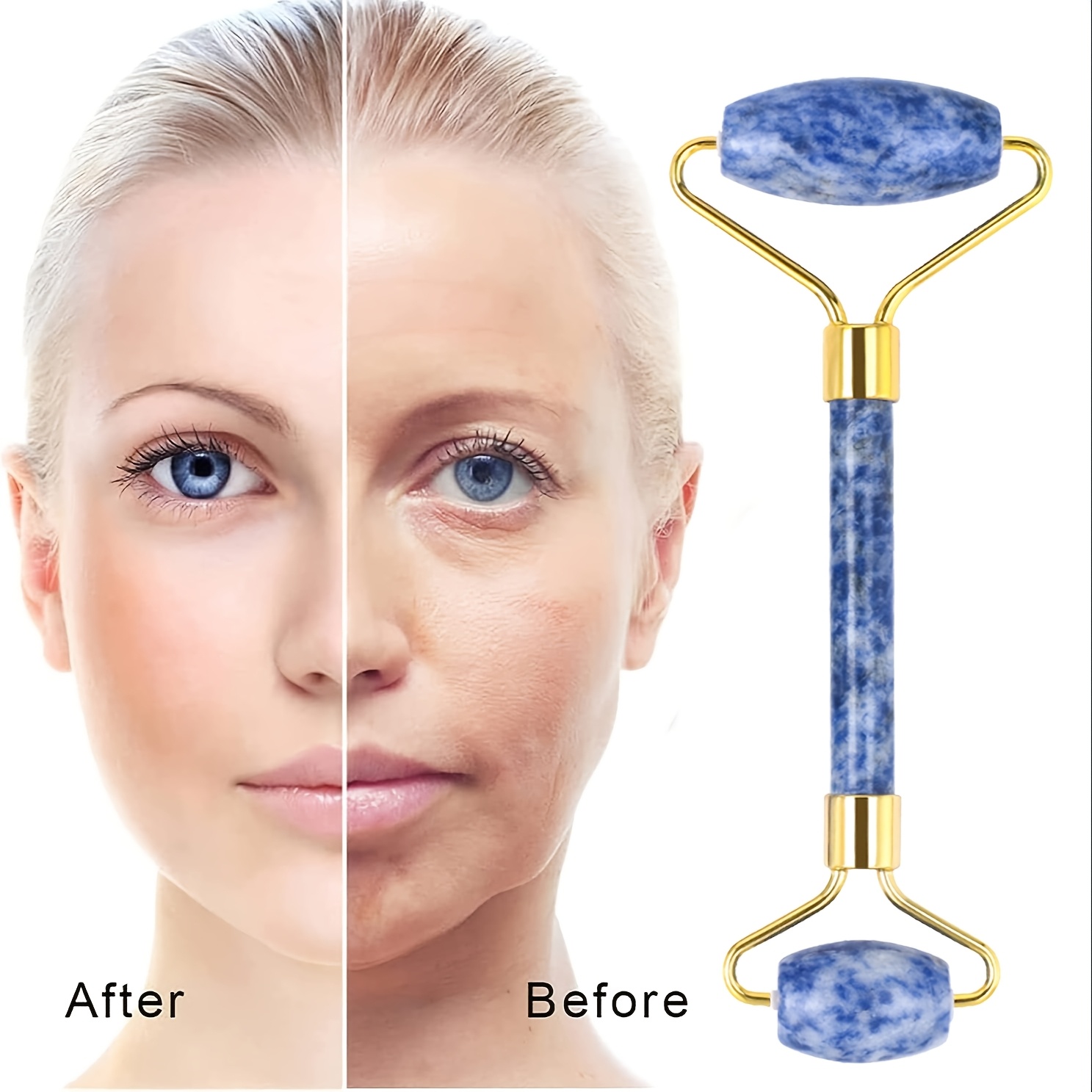 1件面部按摩滚轮 适用于节日精致送礼、个人日常面部舒缓、护肤爱好者按摩护理 天然玉石材质 为肌肤带来放松与焕活的美容工具