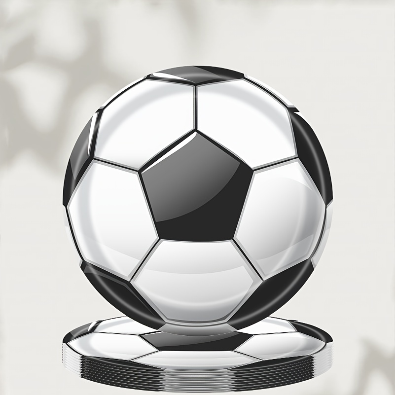 设计与品类 品类为足球主题派对餐盘,采用经典黑白足球的立体造型设计,还原足球的六边形拼接纹理与光泽质感,属于运动主题派对用品中的餐具品类,以堆叠形式呈现,具备强烈的视觉冲击力与主题辨识度。 功能与场景 功能:满足足球主题派对的用餐与装饰双重需求,作为一次性餐盘,便于派对后快速清理;足球造型的设计可强化派对的运动主题氛围,成为场景中的视觉焦点。 场景:适配足球主题生日派对、球迷聚会、体育赛事观赛活动(如世界杯主题派对)、校园足球文化活动等场景,也可用于足球俱乐部活动、运动品牌推广活动的氛围营造。 风格价值 风格:主打运动活力的足球风格,经典黑白足球元素自带强烈的运动符号属性,立体造型与光泽质感传递出激情的足球运动氛围,契合球迷对 “运动仪式感” 的追求。 价值:具备主题氛围营造与运动文化表达价值,沉浸式的足球造型设计能快速点燃派对的运动活力格调,满足足球爱好者对 “足球风 + 派对感” 的双重需求;一次性用品的实用性让派对筹备更高效,是兼顾 “主题感” 与 “便捷性” 的足球主题派对餐具选择。