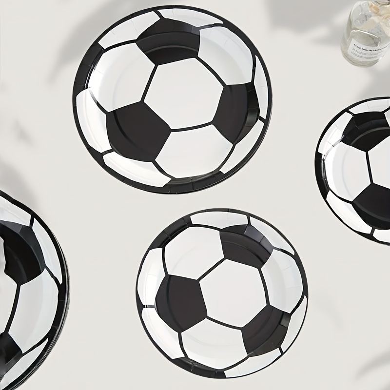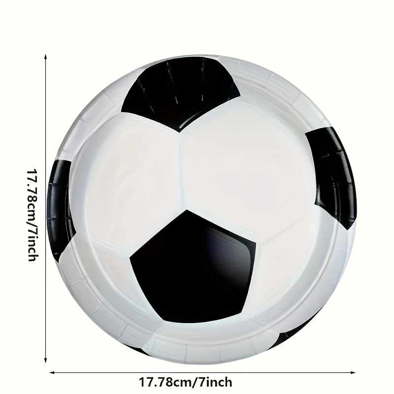 16 Football pattern paper plates -7-inch disposable tableware, suitable for sports theme parties, birthday events, black and white color matching, universal for all seasons
