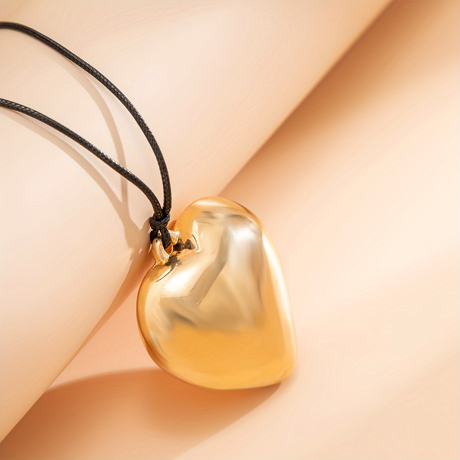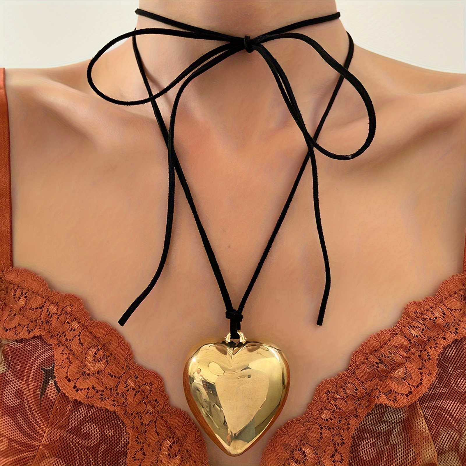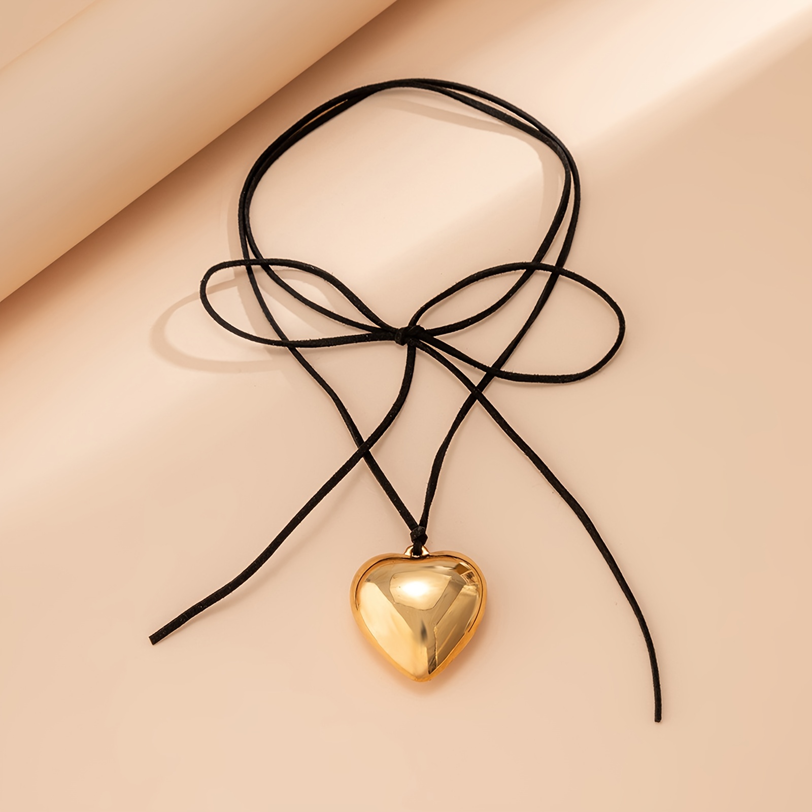 设计与品类:品类定位:属于甜酷风心形吊坠 choker 项链,融合了复古 choker 的设计感与现代立体吊坠的时尚感。 • 材质工艺:采用黑色麂皮绳搭配立体抛光金色心形吊坠,绳身柔软亲肤,吊坠经多层电镀工艺处理,色泽均匀且不易褪色,立体心形设计富有层次感,视觉上更具张力。 • 细节设计:绳身采用蝴蝶结系带设计,可自由调节长度,适配不同颈围,兼具装饰性与实用性。 功能与场景:核心功能:可根据穿搭需求调节绳长,既能作为贴合颈部的 choker 打造甜酷风格,也可延长作为常规项链营造随性氛围;金色吊坠的反光质感能提亮颈部线条,黑色绳身则中和了金色的华丽感,风格适配性强。 • 适配场景:日常穿搭中可搭配甜酷风短上衣、复古连衣裙,瞬间提升造型的吸睛度;约会、小众派对等场景佩戴,能凸显个性审美;也可作为叠戴配饰,与细链项链组合,打造层次丰富的颈间造型。 • 实用优势:麂皮绳材质耐磨且不易变形,日常佩戴无需频繁保养,吊坠结构牢固,不易脱落。 风格价值: 风格定位:将甜酷风格与浪漫心形元素融合,黑色绳身的酷感中和了金色心形的甜腻感,形成 “甜而不腻、酷而不冷” 的独特风格,适配追求个性的年轻群体,也能为成熟女性的穿搭增添一丝俏皮感。 • 价值属性:小众设计不易撞款,彰显独特审美;心形元素承载着浪漫情感寓意,可作为表达心意的礼物;金色的轻奢质感与绳身的休闲感碰撞,让其在 “日常穿搭” 与 “轻社交场合” 中都能成为亮点。 • 受众适配:覆盖 18-35 岁喜爱甜酷、复古、小众风格的人群,无论是学生党打造校园个性穿搭,还是职场人点缀休闲造型,都能轻松驾驭。