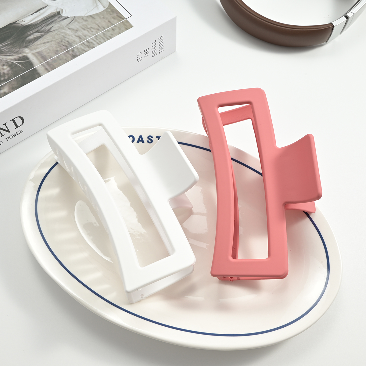 This is a simple and elegant square clip, which is a hair-cutting artifact with both appearance and practicability ~ ✨Core highlights 1. Large size and strong grip, suitable for all hair volumes About 10-11cm large size, curved design fits the head type, widened clip anti-skid dense teeth, more hair volume (coarse and hard hair quality), less hair volume (fine and soft hair quality) can be firmly clamped, jumping, commuting without slipping all day. 2. Low saturation color system, advanced all-match Milky white, nude pink, light purple and other Morandi color, matte frosted texture, simple square design with Korean style relaxation, wearing overcoats, hoodies, commuter clothing are all suitable, half hair/full hair/high ponytail style can hold. Scenario It can be used for daily commuting, dating, dinners, sports and fitness. It is not only a practical tool for hairdressing, but also a fashion accessory to enhance the sense of atmosphere ~