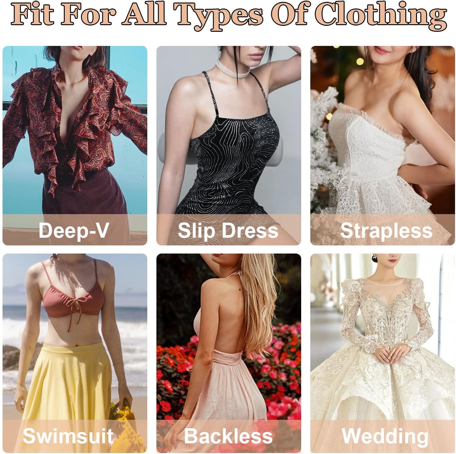 两对无肩带粘性胸垫、隐形粘性胸垫、可重复使用的胸垫,适用于女士无肩带连衣裙。
