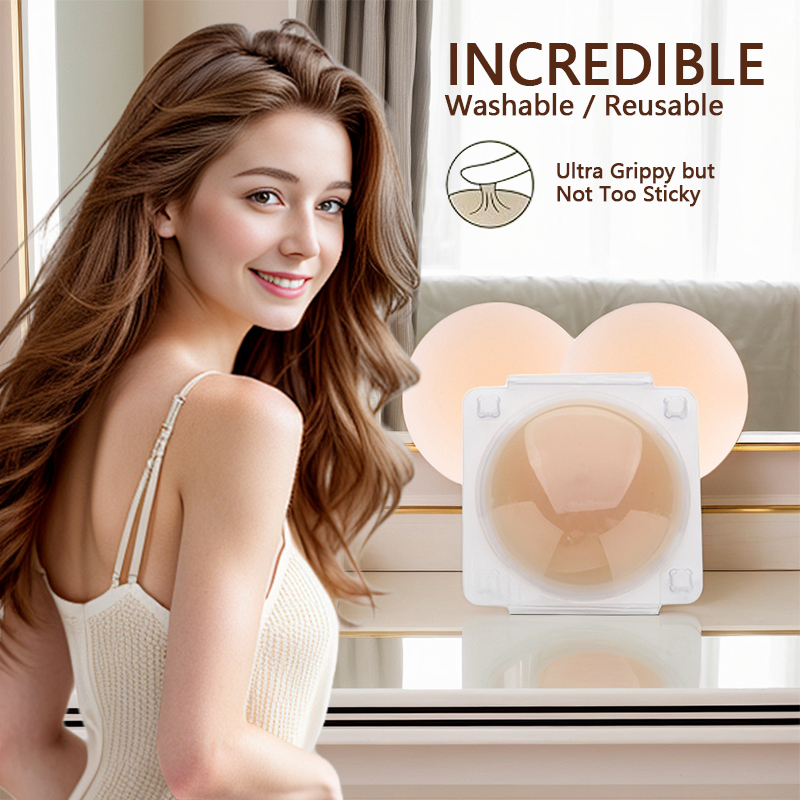这是硅胶隐形乳贴,特点与用途如下: 材质友好:采用低致敏性软硅胶,温和亲肤,尤其适合敏感肌人群。 强粘隐形:粘性强,佩戴后不易脱落;边缘超薄且渐薄设计,贴合肌肤后几乎隐形,适配吊带、深 V 等多种露肤服饰。 场景适配:用于隐私保护,助力打造无束缚的精致穿搭,满足日常、派对等多场景造型需求。