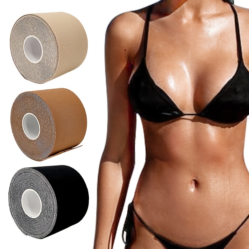 这个产品是女性专用胸贴胶带(隐形防走光固定胶带),产品特点: 一、设计与品类 品类定位:属于美妆服饰类辅助用品,是隐形胸贴专用胶带(独立盒装)。 外观设计: 配色:采用肤色哑光设计,贴合自然肤色,使用时隐形不突兀; 包装:粉色盒装 + 独立胶带卷,兼顾美观与收纳便携性; 材质:轻薄弹性织物 + 低敏医用级背胶,柔软亲肤且粘贴牢固。 结构设计:胶带卷装可自由裁剪尺寸,适配不同胸型、服饰的固定需求。 二、功能与场景 核心功能: 隐形固定:替代传统胸贴,实现吊带、抹胸等露肤服饰的防走光、塑形支撑; 舒适适配:弹性材质贴合身体曲线,久戴无束缚感,防水防汗不易脱落。 适用场景: 日常穿搭:吊带、背心、露背装等轻薄服饰的防走光固定; 特殊场合:晚宴、派对等需要穿露肤礼服时的隐形塑形; 夏季使用:替代厚重内衣,兼顾清凉感与穿戴安全感。 三、风格价值 风格属性:“隐形精致风”,肤色设计适配各类服饰,轻薄材质契合极简、性感等穿搭风格,满足女性对 “隐形支撑 + 美观得体” 的需求。 价值体验:解决露肤服饰的走光痛点,同时兼顾舒适与隐形,是 “提升穿搭自由度 + 增强穿搭安全感” 的实用美妆辅助工具。