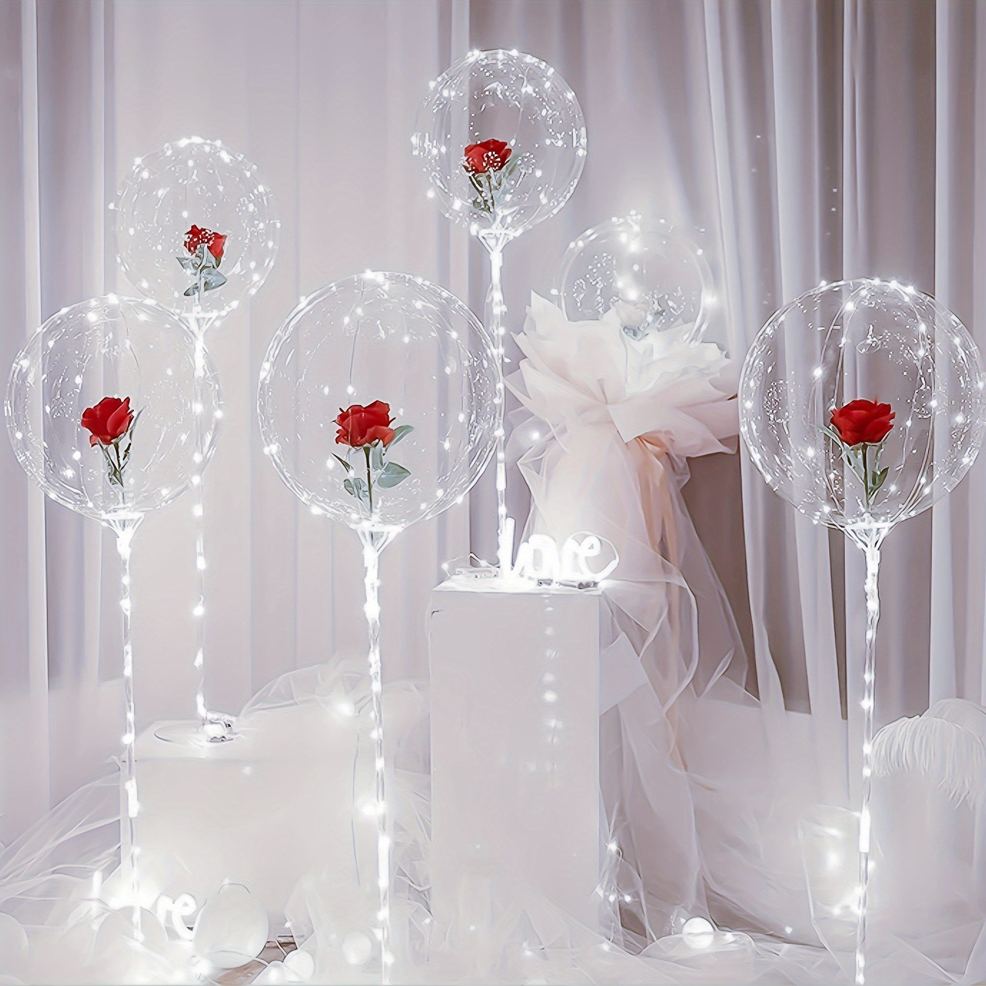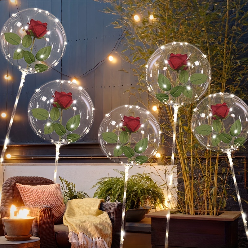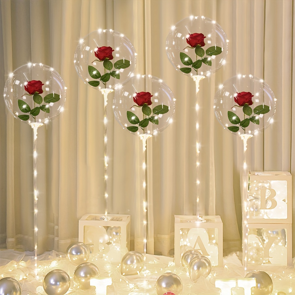 2 pieces of LED string luminous transparent wave balloons (excluding internal power) red rose bouquet balloons with poles, suitable for weddings, Valentine's Day gifts, Mother's Day, birthday party decorations
