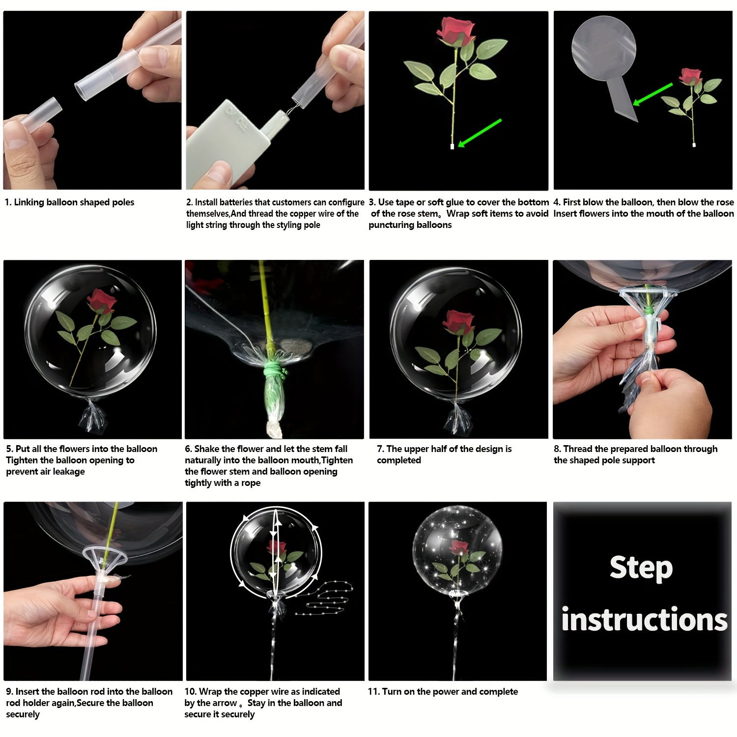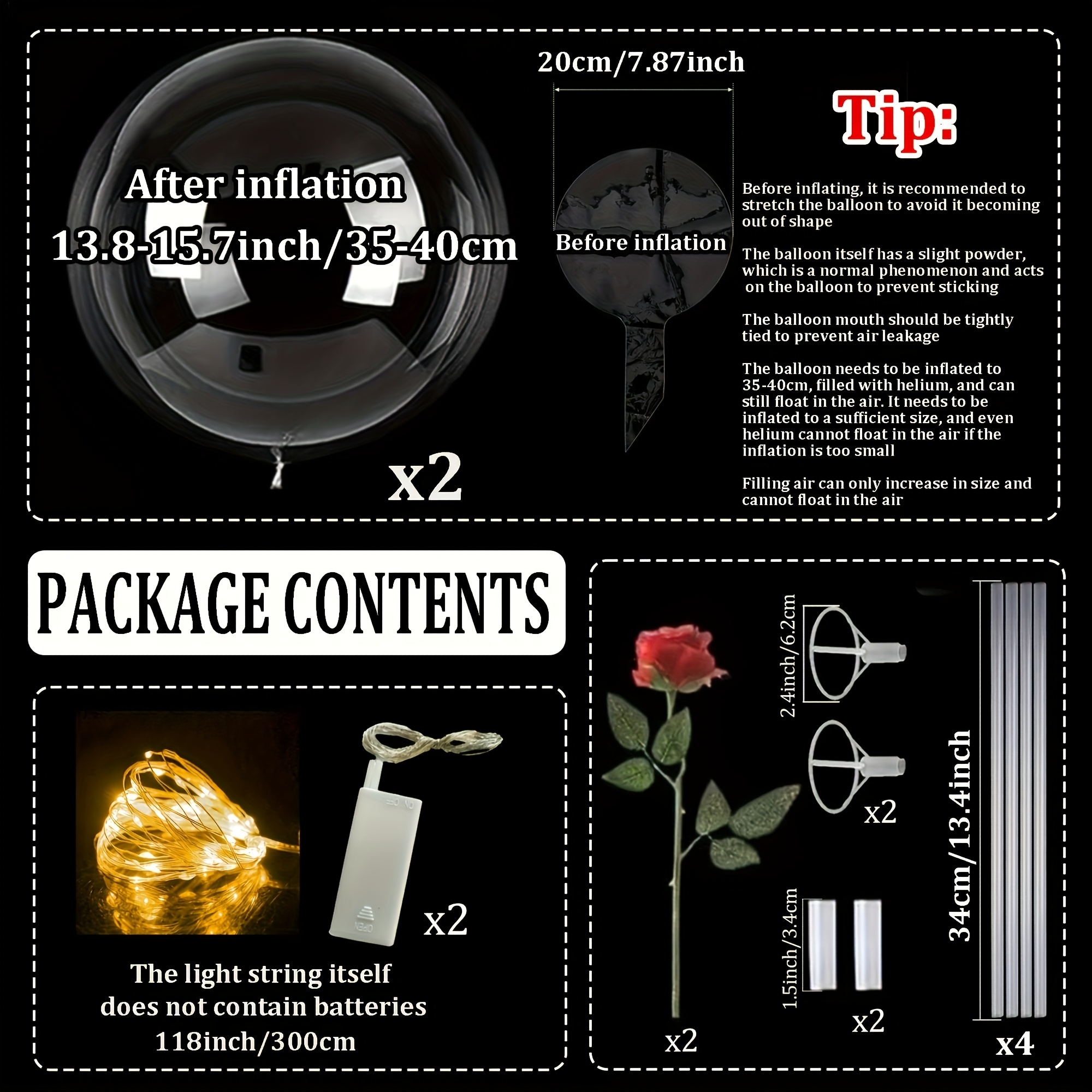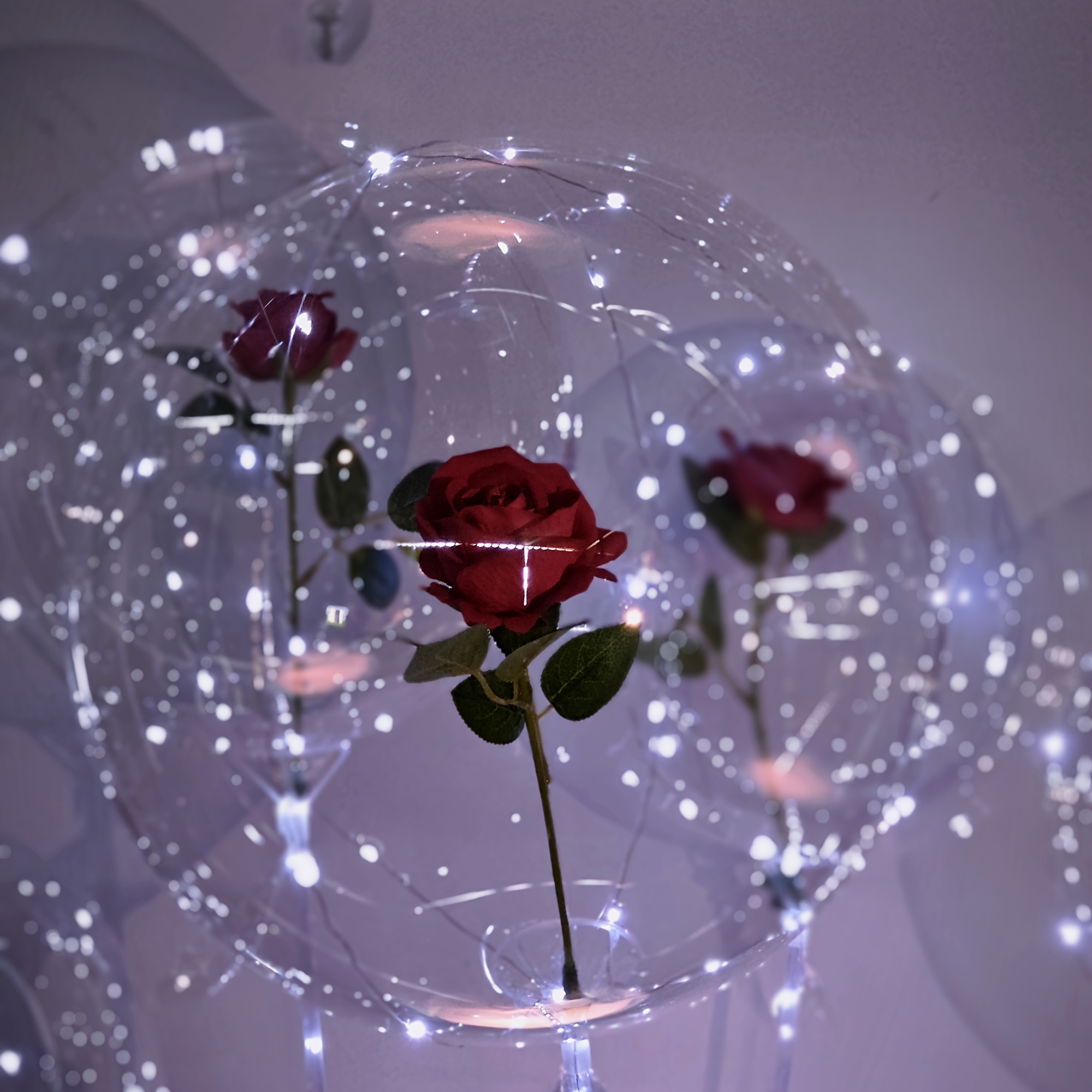 2 pieces of LED string luminous transparent wave balloons (excluding internal power) red rose bouquet balloons with poles, suitable for weddings, Valentine's Day gifts, Mother's Day, birthday party decorations