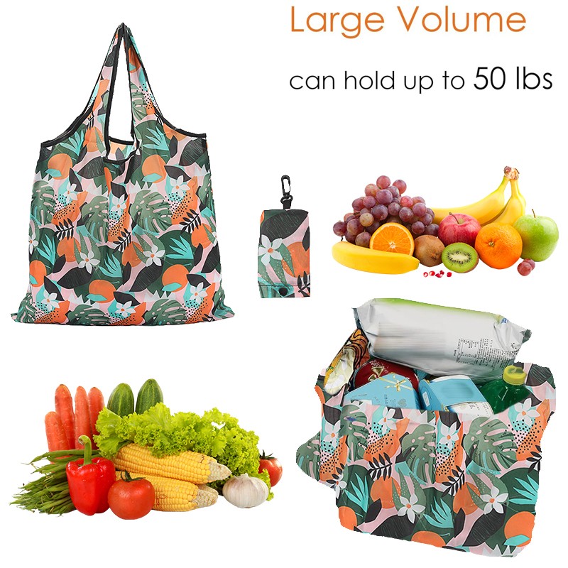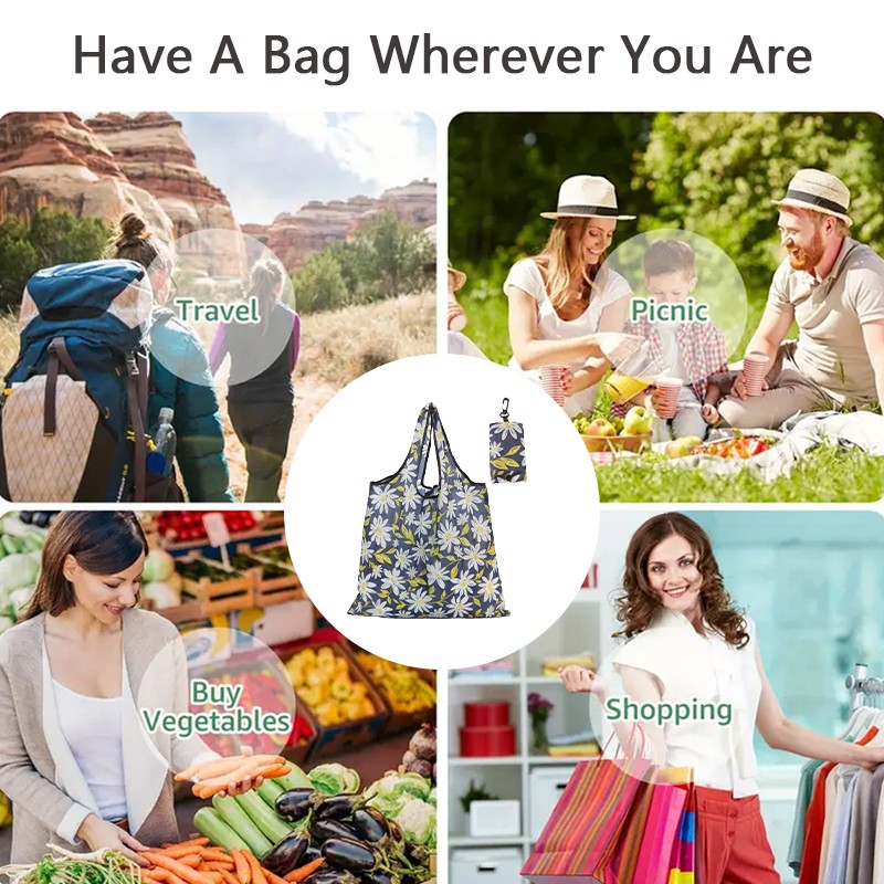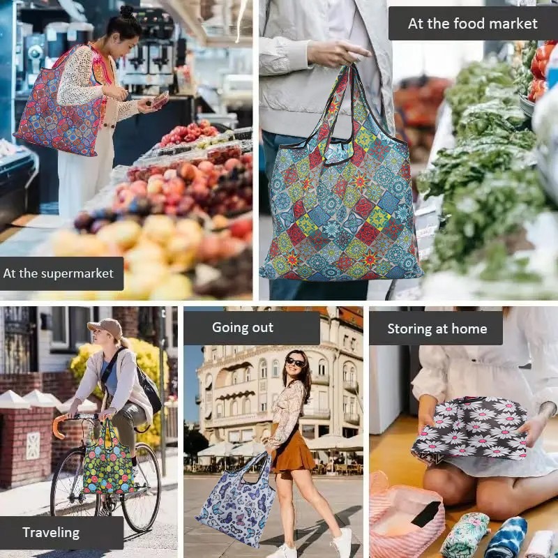 1 waterproof and foldable handbag with a variety of printed patterns, suitable for food purchase, travel, picnic, machine wash bags, reusable shopping bags
