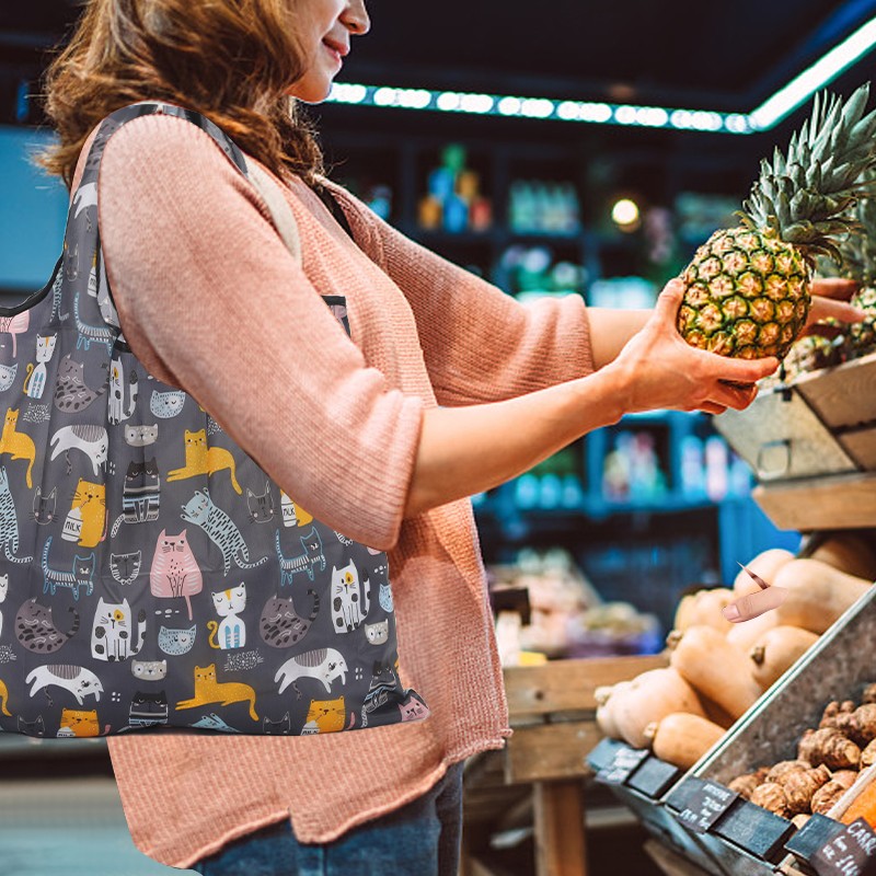 This is a printed foldable environmentally friendly shopping bag with the following features: Design and material: the color elephant printing design is adopted, and the style is lively and eye-catching; The material is foldable and environment-friendly fabric, which is light, durable and easy to store. Application scenario: it is suitable for supermarket shopping, farmers' market purchasing and other scenarios, replacing disposable plastic bags to meet the storage needs of goods while practicing the concept of environmental protection. Cultural significance: fit with the trend of sustainable lifestyle, improve the use experience of environmental protection products through interesting printing design, and help develop green consumption habits.