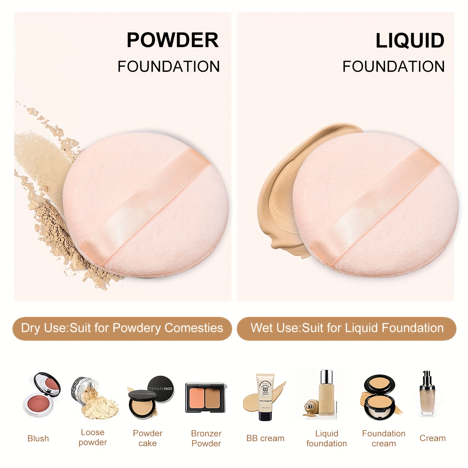 6pcs 粉扑园形化妆粉扑垫,脸部散粉粉扑,化妆的工具,适用于散粉和粉底液速瑕,干湿两用,易清洁,小巧便携