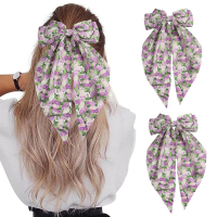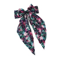1PC 大号缎面长尾发夹-黑色小碎花女式丝滑缎带发夹 缺货
