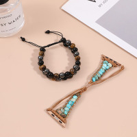 5pcs女士叠戴串珠手链可堆叠珠手链多层高弹性手链蓝色复古手链手镯四季日常佩戴吊饰手链珠子手链套装礼物 缺货